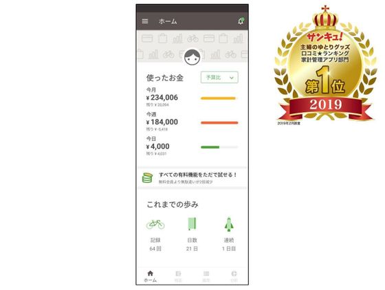 とはいえ、毎日家計簿をつけるのは面倒という人も多いでしょう。そんなときは、スマートフォンのアプリでラク&効率的にすますのがおすすめ。家計簿アプリ部門で1位に輝いた「オンライン家計簿『Zaim』」は、レシート撮影をするだけで品目や金額を読み取って自動入力してくれる圧倒的な手軽さが特徴となっています。
