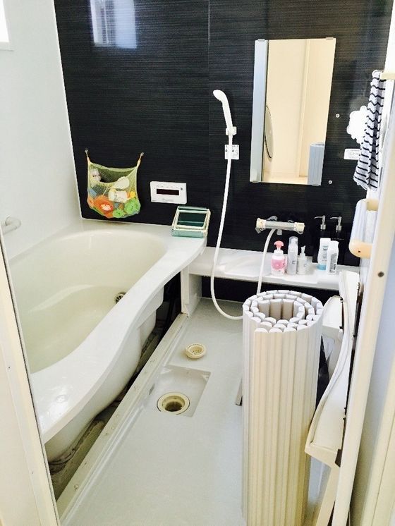 ここゆきさんは、お風呂場の浴槽エプロンを外し、ぬめりを拭いたあとに湿気をとり、カビ予防をしています。排水口のふたや、石鹸類が置いてある棚も外して、全体的に掃除。掃除が終わったあとは窓を全開にしておくと、夕方までには水滴がたまりやすい箇所もしっかりと乾いているのだとか。