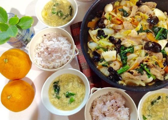 「ミールキットは、楽ちんで簡単に作れるので、心と体に余裕がないときなどは、本当に助かります」。この日に注文したのは『海鮮八宝菜とほうれん草のかき玉スープ』。調理を開始してからたったの20分で、まるでお店のような豪華な晩ごはんが完成! 「調理したあとは食材が入っていた袋などをまとめるだけ。片づけも楽ちんで、食材の無駄が出ないから、心にもやさしいですね♪ 包丁いらずで簡単に作れるので、わが家では主人や娘に作ってもらうときも」と、ママを助けるツールとしてだけでなく、家族のコミュニケーションツールとしても大活躍しているそうです。