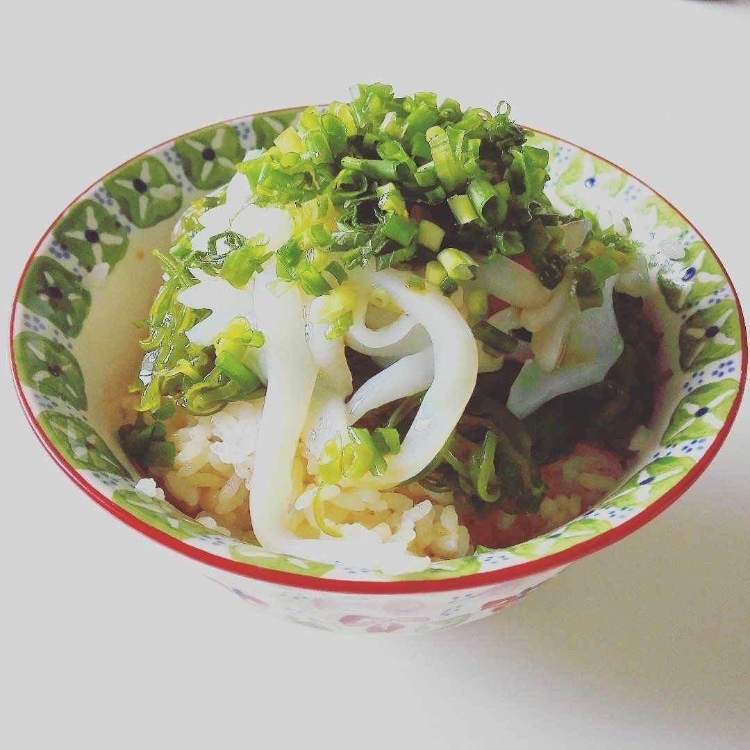 夫も、もりもりとご飯が進んだという、きえさんのイカ丼。たっぷりのイカとメカブをご飯に乗せ、ごま油をかけ、刻みねぎを添えるだけの超時短レシピです。これからの季節、食欲がないときなど、海のものと薬味の組み合わせでさっぱりといただける、使い勝手のよい一品になりそうですね。
