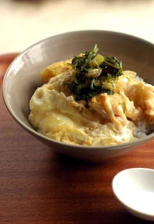鶏むね肉は家計を救うと積極的にむね肉をつかうママーリオさんは、その際に出る鶏皮の二次使用として親子丼をつくるそうです。鶏皮を茹でて脂抜きし、洗ったあとは小さめに切り、ふつうの親子丼と同じく玉ねぎと煮て卵でとじ、ご飯に乗せればでき上がり。トッピングには余りがちな春菊でつくった佃煮を添えています。二次使用の食材とは思えない一品になりました!