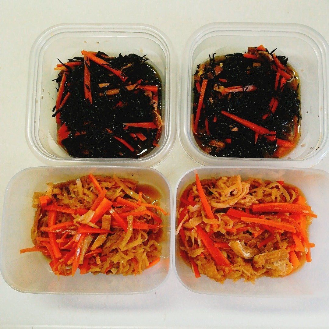 「鶏ハム」のほかに、ひじきやきんぴらも常備菜としているzumyさん。ニンジンと油揚げは共通食材なので、同じタイミングでつくることが多いのだそう。お弁当のおかずの一品としても活用し、長くても数日で食べきれる量をつくっています。