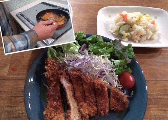 調理はパパにお任せ。サクサクのローストンカツが20分!