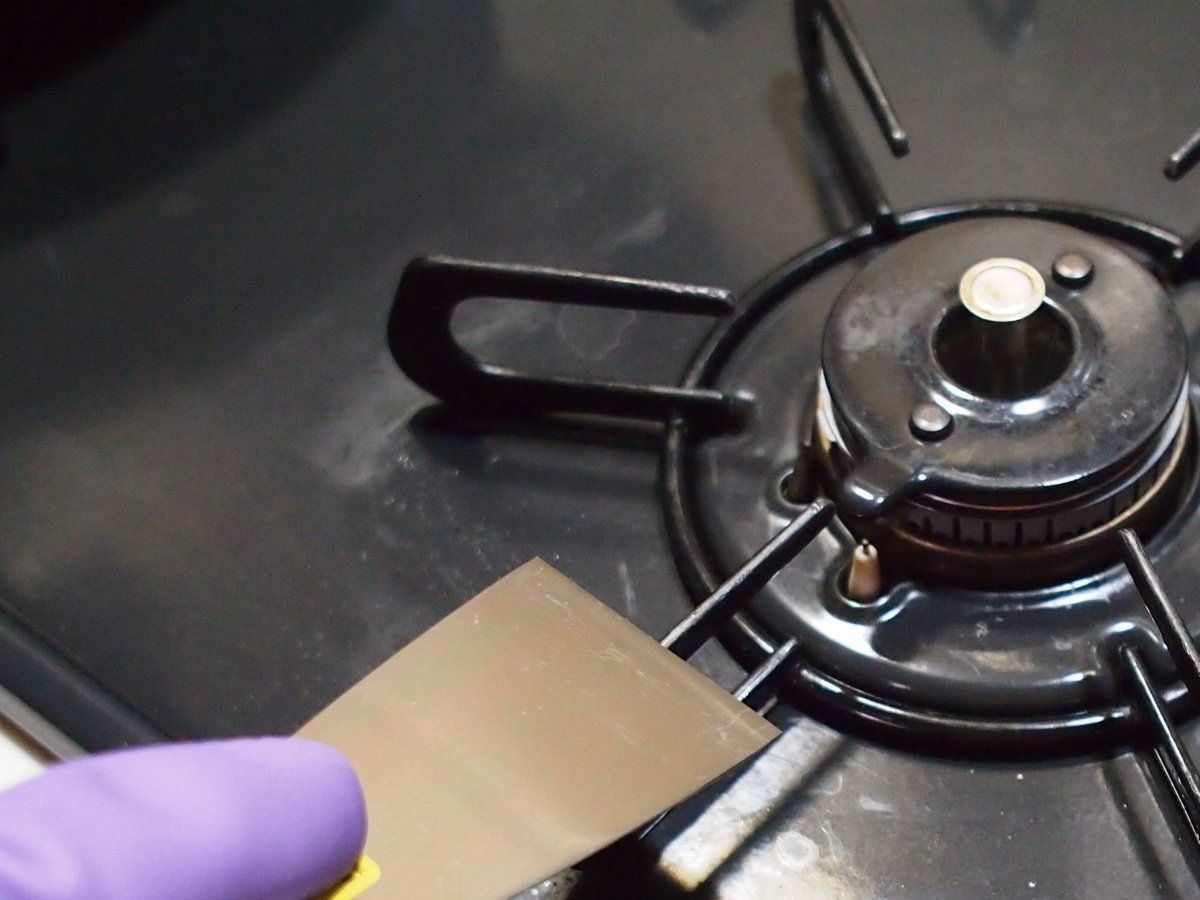 どんな時に使うのかといえば、壁に貼られたシールを剥ぎ取ったり、コンロの焦げつきなどを剥ぎ取るのに便利だそうです。
