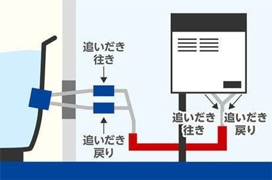 というのも、フロ釜の配管にはどうしてもお湯が残ってしまいます。お湯にはヒトの皮膚にすむ菌(常在菌)や、汗や皮脂などの汚れが混ざっていて、この汚れを栄養源として雑菌が増殖しています。配管に残ったお湯が放置されている間、雑菌は増殖を続けます。放置される期間が長いほど、次にお湯をはったときに配管で増殖した雑菌が一気に浴槽に流れ込みます。