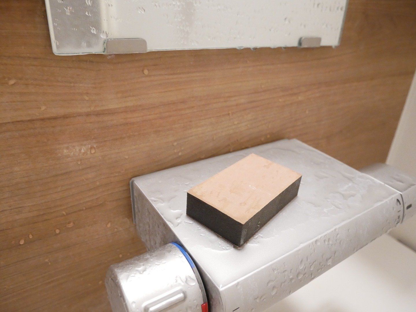 トイレや洗面所など、使ったついでに掃除できるよう、水回りにつねにメラミンスポンジを常備しているのだとか。パッと目につく場所に置いていれば数分もかからずに掃除が終了できます。