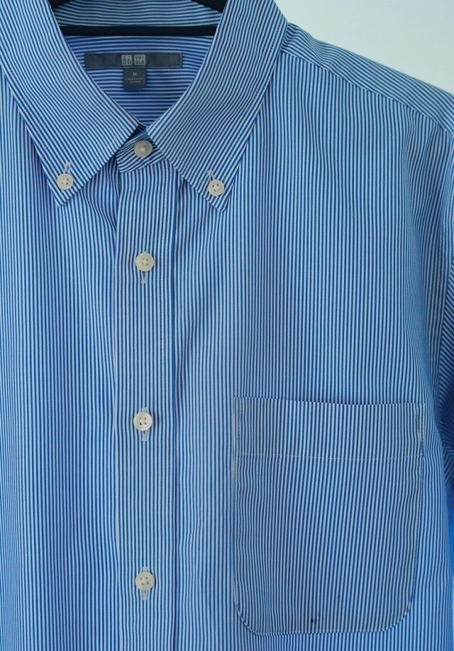 風が入って乾きやすいように、シャツは第2ボタンを留めて、すそを数回引っ張ってしわをのばしてから干すときれい。
