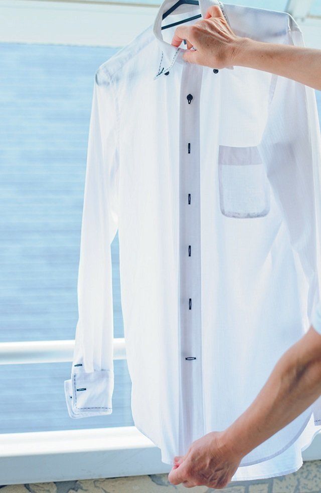 時間がないときのシャツのアイロンがけは、「きれい見えポイント」だけ念入りに。襟や肩、後ろのタックをピンとかければ、充分きれい!