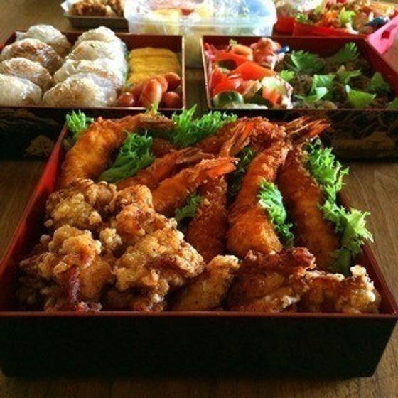 サンキュ!トップブロガーの野口ゆかさんはおこさんが大好きだという「エビフライ」が定番。こちらは毎年揚げるだけの状態にしたものが田舎からプレゼントとして送られるそうです。豪華ですね!