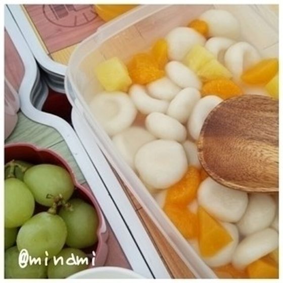 白玉入りのフルーツポンチをつくっていったのは、サンキュ!ブロガーのminamiさん。ちょっと凍らしていくと、お昼には食べごろに。紙コップにいれていただくのだそうです。ナイスアイデア!
