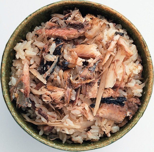 ● 炊き上がったら、さんまの骨、頭などをはずして混ぜる。