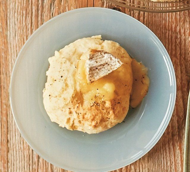 クイックパンの生地の材料を混ぜ、天板に¹⁄₄量ずつこんもりとのせ、カマンベールチーズ(個装タイプ)4個をそれぞれにのせて軽く押し込み、粗びき黒こしょう適量をふり、オーブントースターで10分(オーブンの場合は170℃で15分)焼く。