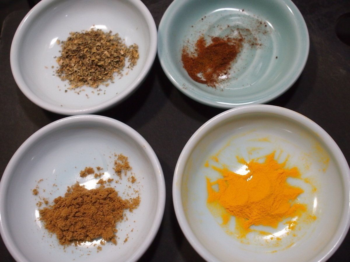 2人分の分量はレッドチリペッパーが小さじ1/2。それ以外は小さじ1になります。辛いのが苦手なかたであれば、レッドチリペッパーはもっと少な目か、なくてもいいです。