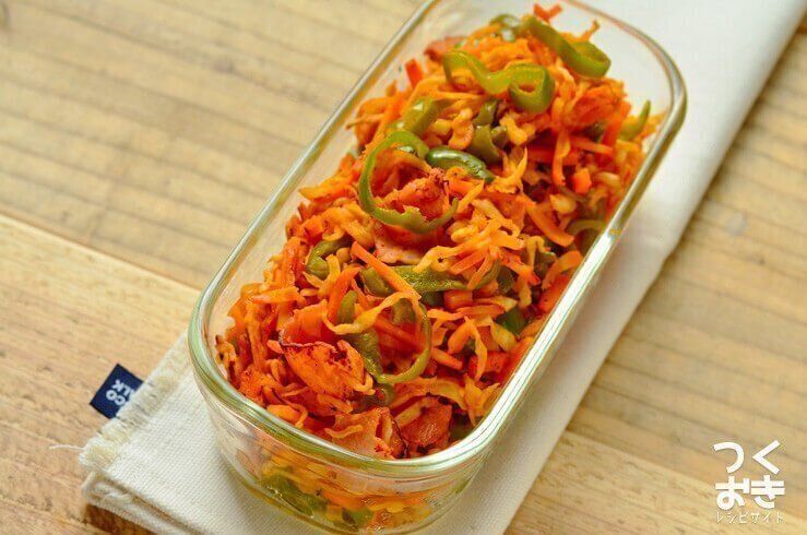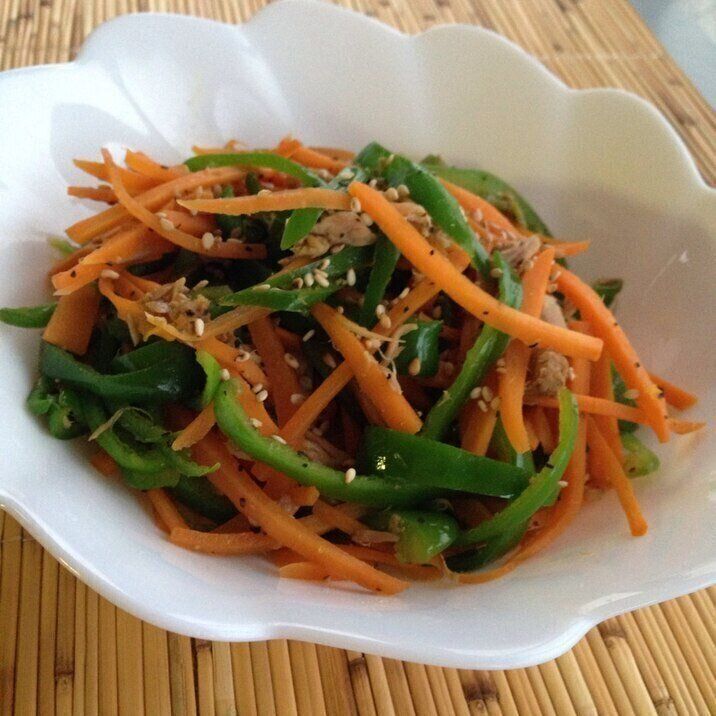お弁当のおかずにもぴったりな、にんじんとピーマンのツナ炒め。約10分でつくれるスピードおかずで、いそがしい朝でもすぐにつくれます。ピーマンとニンジンの色のコントラストが鮮やかです。