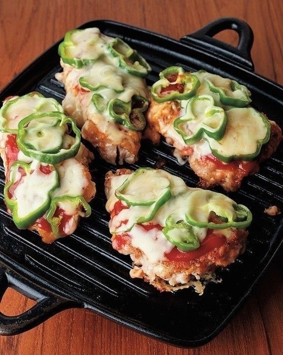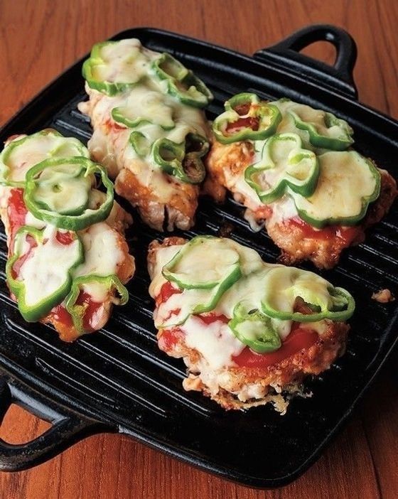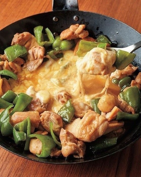 フライパンだけでつくれる、チキンのトマト煮込み。ピーマンは細切りにして、具材といっしょに煮込みます。じっくり煮込むだけなので失敗しにくく、洗い物がすくないのもうれしいポイントですね。