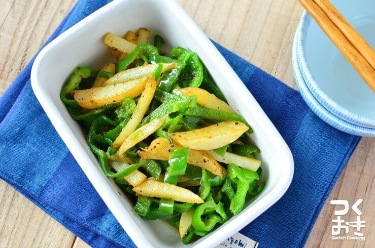 一年中手ごろに買える、ピーマンとじゃがいもを使った炒め物のレシピです。ピーマンの炒め具合や、じゃがいもの皮を残すかどうかは好みで選んでくださいね。ベーコンや炒り卵を入れて、ボリュームアップさせても◎。