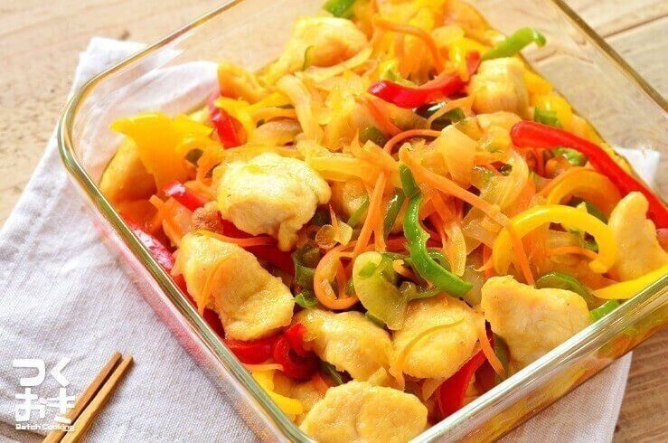 さっぱり味の野菜たっぷりおかず。鶏ささみ南蛮