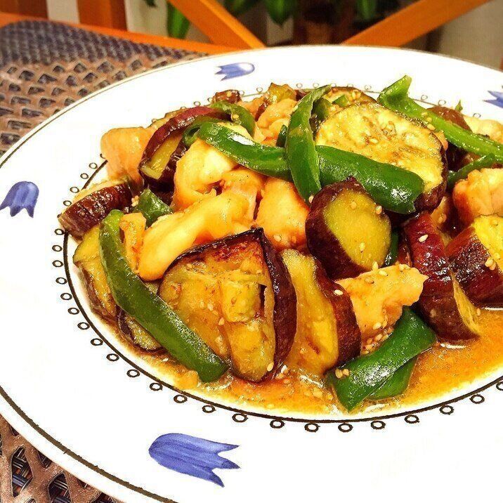 スタミナががっつりつきそうな、なすと鶏肉のにんにくみそ炒め。鶏肉・なす・ピーマンの相性がバツグンです。みそやにんにくの風味が、食欲をそそること間違いなしですよ。