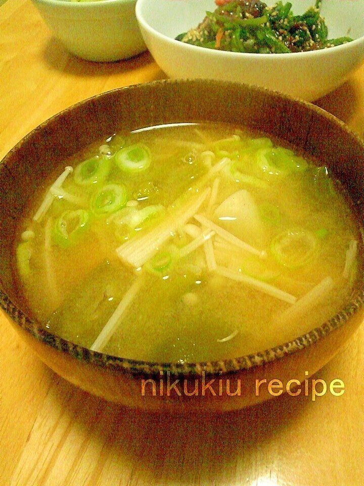 ねぎ・えのき・ピーマン・さといもの味噌汁