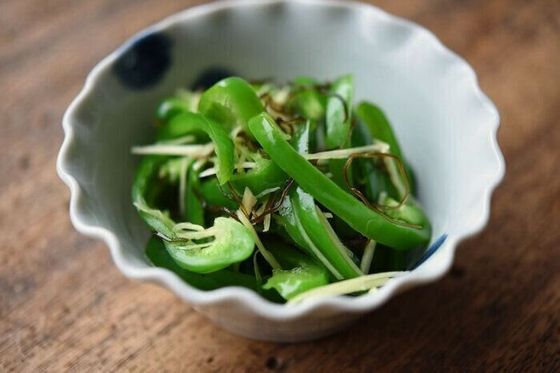時短おかずとして大活躍する、ピーマンとショウガの塩昆布あえ。3つの材料だけで、火を使わずに10分以内で完成します。ショウガはおろしたものではなくせん切りを使うことで、味によりメリハリがつきますよ。