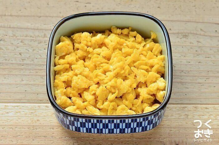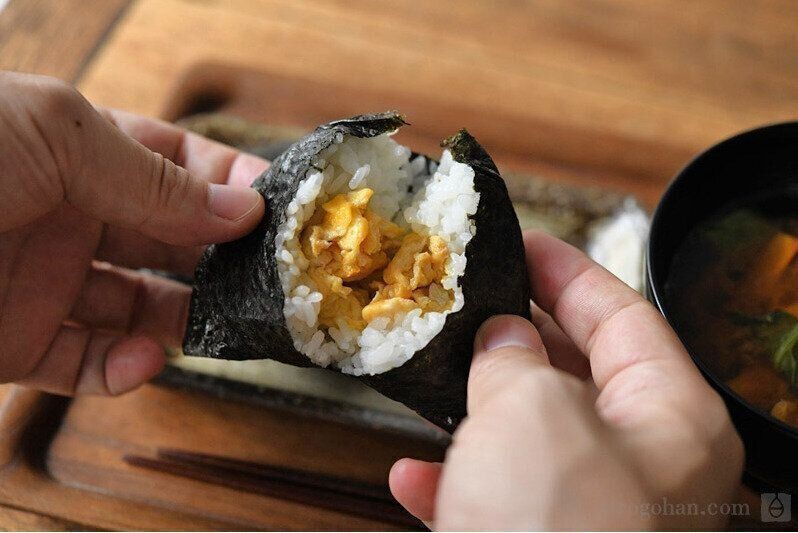 炒り卵はおにぎりの具と相性抜群です。このレシピの炒り卵は、面倒な下味不要で、できあがった炒り卵に醤油をかけるだけなので、失敗しらずでだれでも簡単につくれます。