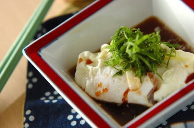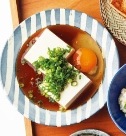 卵好きにはたまらないねぎたま!絹ごし豆腐に、水とめんつゆでつくったたれをかけ、卵を割り入れて仕上げに万能ねぎを。あと一品ほしいときにもお役立ちのレシピです。