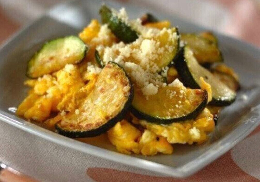 卵とカレー粉を混ぜ合わせたら、ズッキーニと豚肉をくぐらせてこんがりと焼きます。スパイシーな仕上がりで食欲もアップ!子どもにも大好評です。