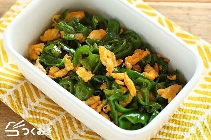 焼いたスナップえんどうを、めんつゆと混ぜた溶き卵でからめて炒めます。緑と黄色で見た目がカラフル!お弁当の色どりにばっちりですね。