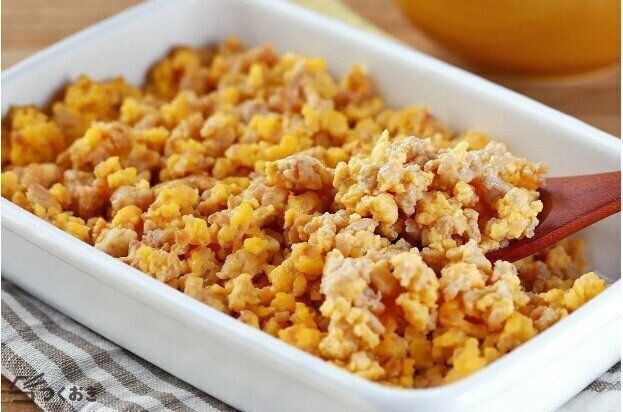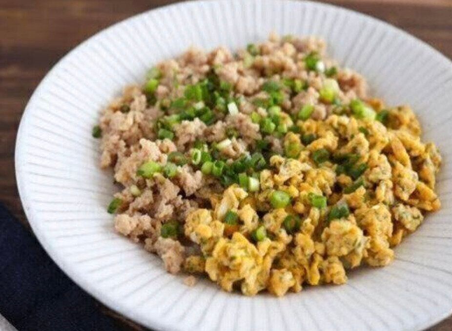 ほっこりやさしい味わいのそぼろ丼のレシピです。卵に青のりをプラスすることで、風味が豊かになり、ほどよいアクセントになります。