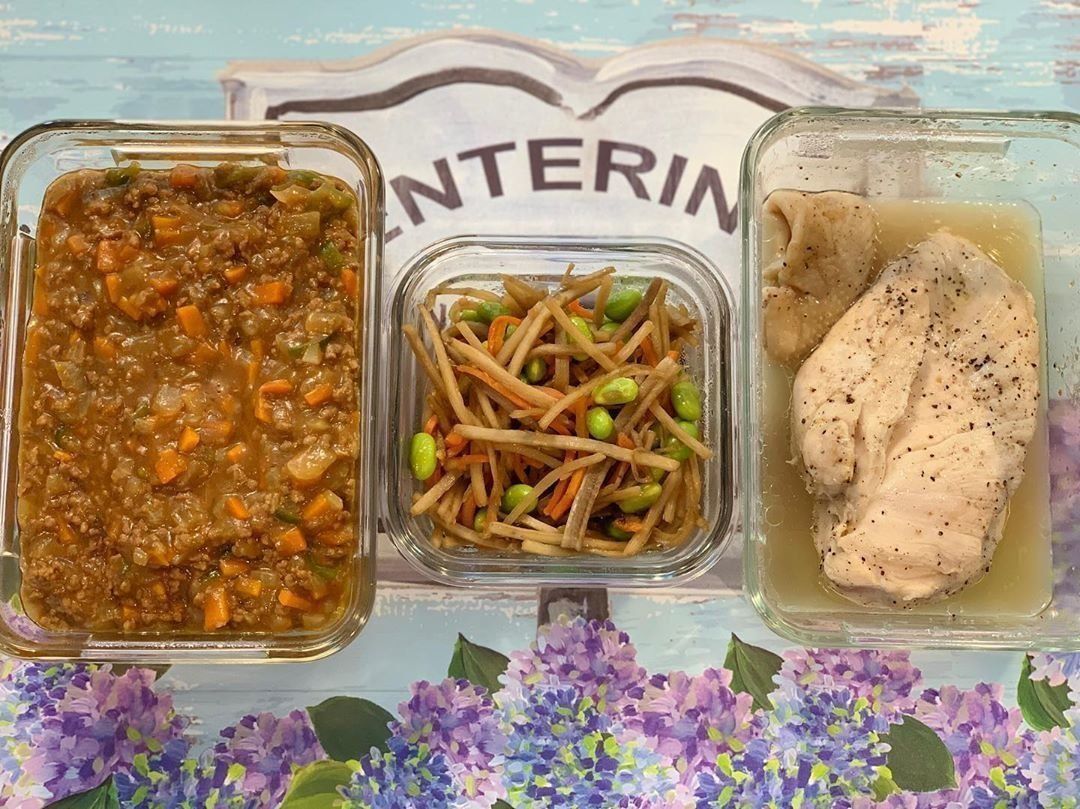 an_ko711さんは、月曜日から火曜日にかけて常備菜をつくり、週末にかけて消化していくルーティンで生活をしています。この日は、野菜たっぷりのキーマカレー風ときんぴらゴボウ、コショウたっぷりの蒸し鶏を調理。寝る前に翌日つくるものとお弁当のメインを考えているようです。