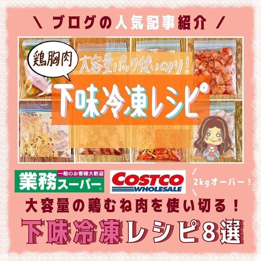 業務スーパーや、コストコで大容量の鶏むね肉を購入しているmayu.kakei_28さん。購入後は、唐揚げ用、タッカルビ風、白菜とのうま煮、鶏チリなどに味つけて下味冷凍をしています。またお弁当用にゆずこしょう、刻みたまねぎソース、カレーマヨソテーの胸肉も常備しています。