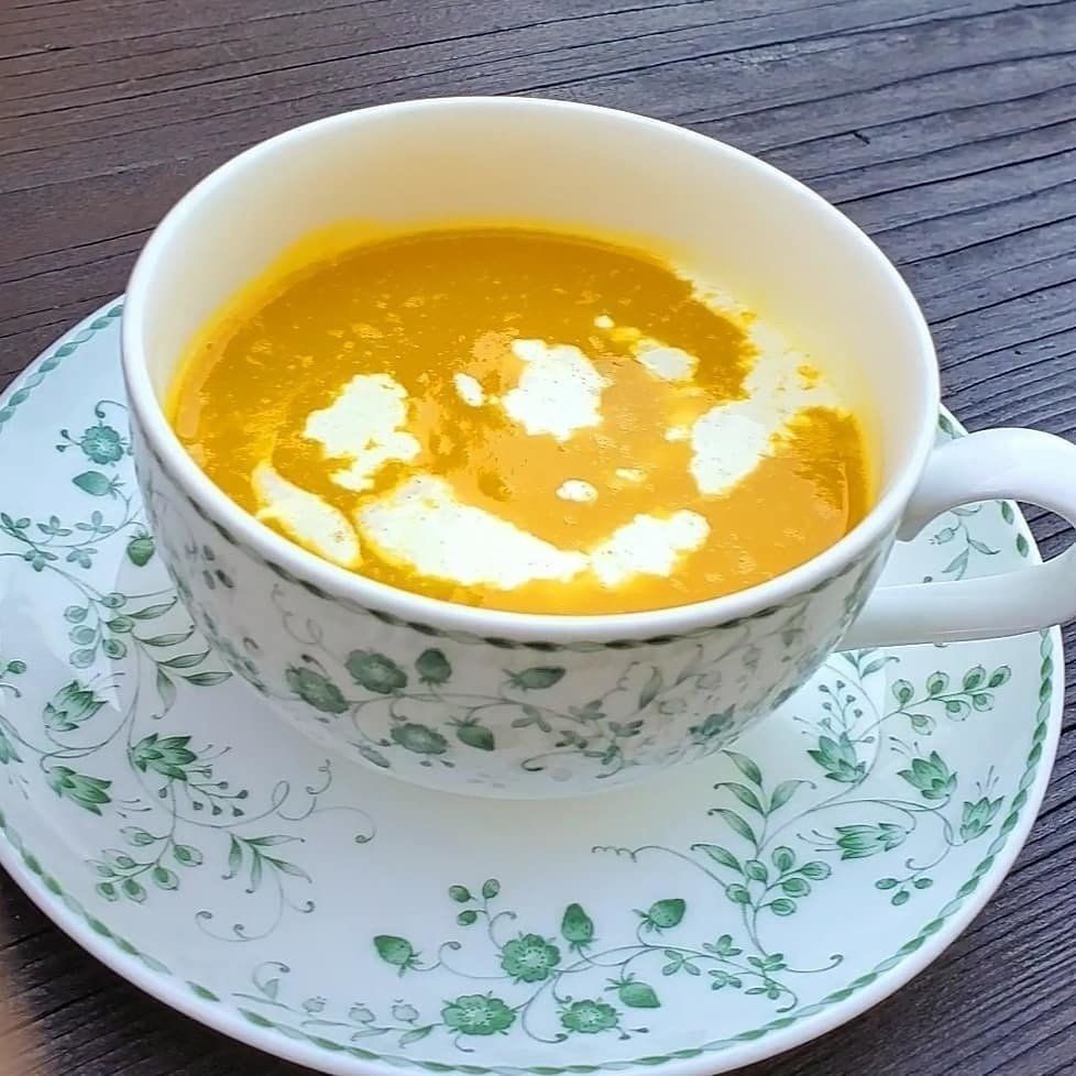 食材定期便から届いたカボチャを使用して、カボチャのポタージュをつくったmokochan222さん。寒くなると出かけるのが憂鬱になってしまいますが、自分で手づくりすれば寒い日のおうちカフェも簡単に実現!体が温まり、節約もできるので一石二鳥ですね。