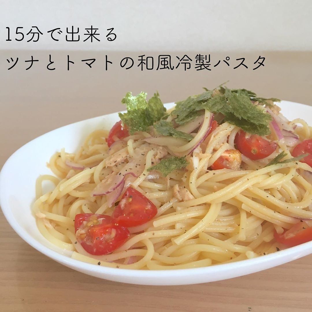 インスタ映えする時短パスタのレシピを紹介してくれたのは、mariruri.fp3さんです。ゆでパスタを水でしめ、トマト、ツナ缶、麺つゆ、オリーブオイル、白すりごまと和えるだけ。最後に黒こしょうと海苔をのせれば完成です。時短を重視するなら、細めのパスタを使うのがオススメ。新玉ねぎや赤玉ねぎを使えば、水にさらす手間も省けますね。