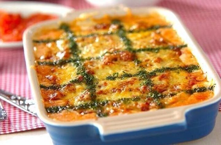 玉ねぎたっぷりのラザニアをもう一品ご紹介。パスタの代わりに、ジャガイモを使ってアレンジしたラザニア風ポテト焼きです。ジャガイモは、電子レンジで加熱してから調理すると時短になりますよ。
