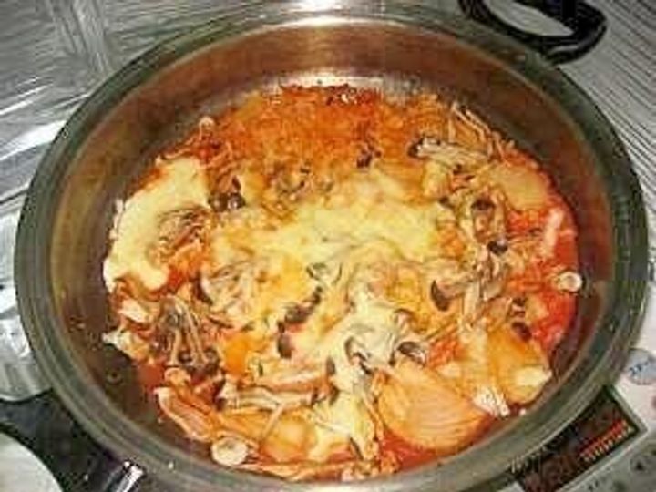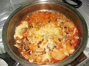 玉ねぎの甘さも溶け出す、トマトチーズリゾットのレシピです。材料を鍋に入れるだけなので、手軽につくれるのがうれしいポイント。仕上げにイタリアンパセリをのせても◎。