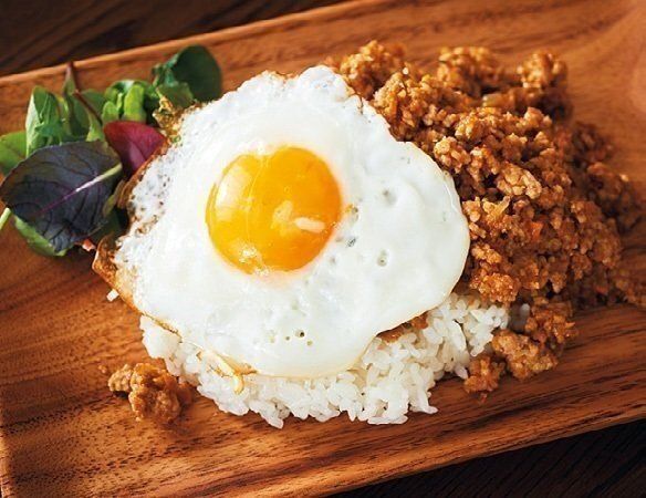 時間も手間もかかるメニューは、なんちゃってレシピで上手に手抜きしちゃいましょう。豚ひき肉、みじん切りにした玉ねぎとにんじん、おろしにんにくを炒め、刻んだカレールウで味をつけたら、目玉焼きをトッピング。カレー粉ではなくルウを使えば、ほかの調味料を加えなくても味が一発で決まります。