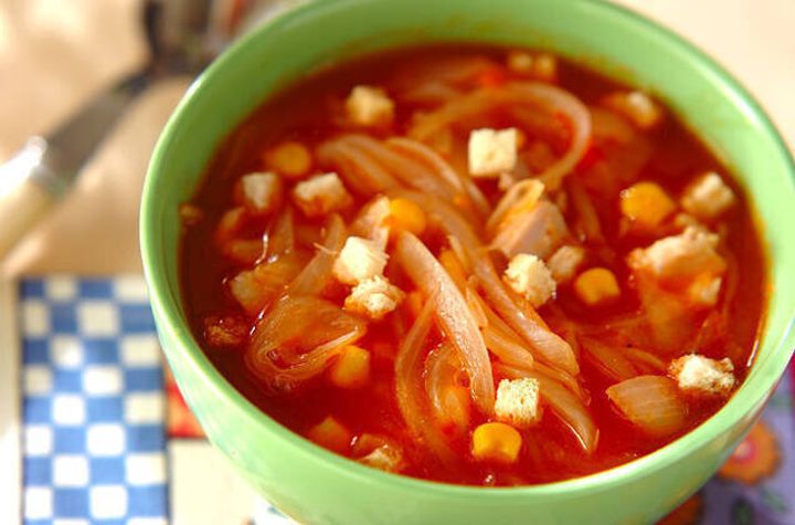 「具だくさんスープ」レシピをもうひとつご紹介。玉ねぎ、ごぼう、キャベツ、エリンギなどの野菜と、厚揚げを入れたトマトスープです。15分もあれば、あったかくておいしいスープのでき上がり。身も心もお財布も寒くなってきたら、ボリュームスープでほっこりあたたまりましょう。