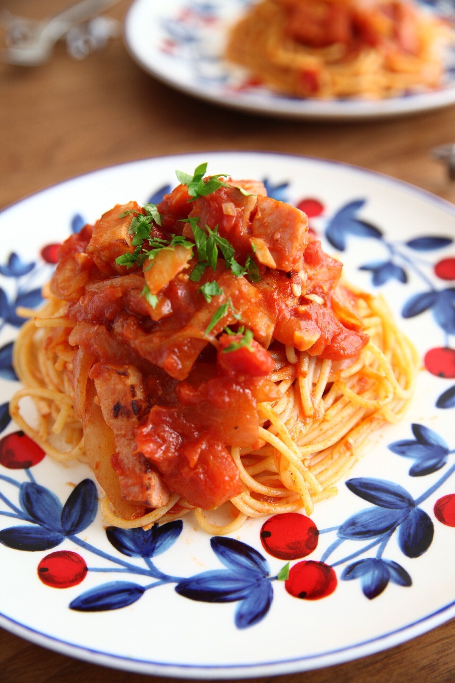 みそが隠し味!厚切りベーコンと玉ねぎのトマトソースパスタ