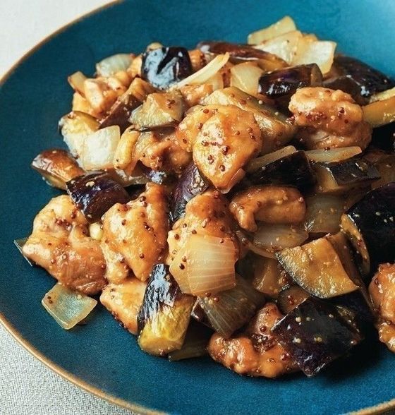 鶏肉1枚でも、大量のなすと玉ねぎで炒めればボリューム満点のおかずに変身。しょうゆ、お酒、砂糖のいつもの組み合わせに、マスタードをプラスすることで奥深い味に!