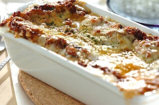 こんがり焼き色がついたラザニアのレシピです。玉ねぎを入れたミートソースとホワイトソースがからみ、自宅にいながら本格的なラザニアを楽しめます。お好みで季節の野菜を加えてもOKです。