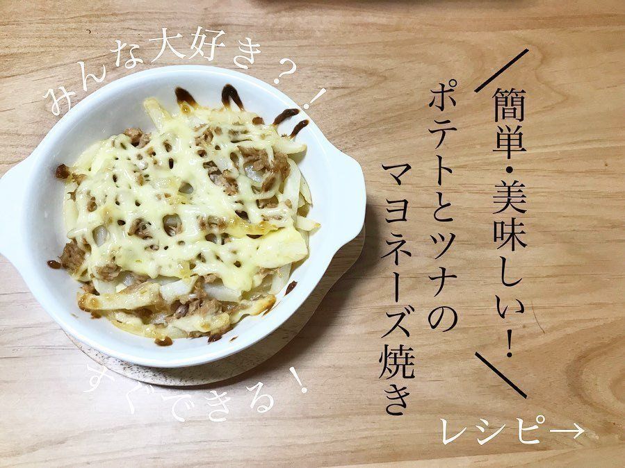 1カ月食費2万円を目標にしているというaki.kakeiaccountさんがつくっているのは、冷凍ポテトにツナ缶を乗せ、マヨネーズをかけてトースターで焼くだけの簡単メニュー。「あと1品ほしい!」というときにも便利なんだそう。手間もほとんどかからずあっという間につくれるのはうれしいですね。