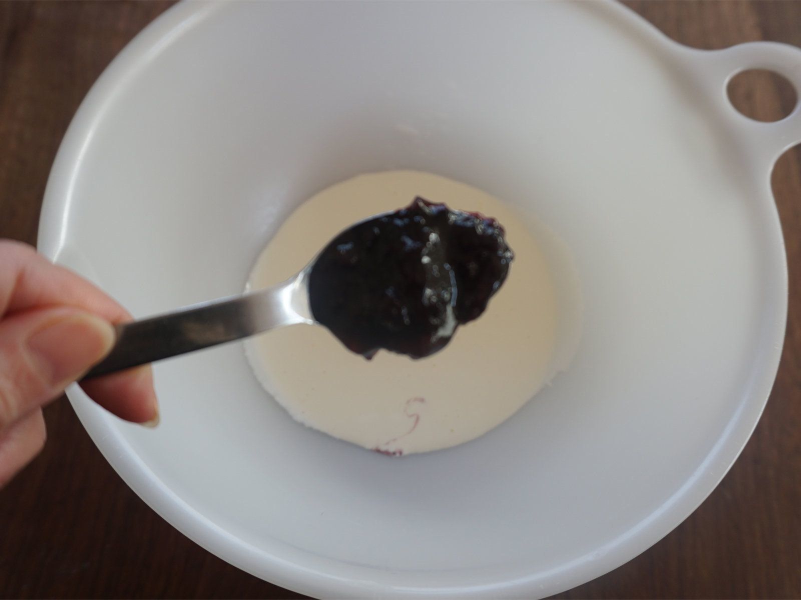 そして、裏技ふたつめはジャムです。レモン汁同様、小さじ1程度のジャムを生クリームとともに混ぜます。