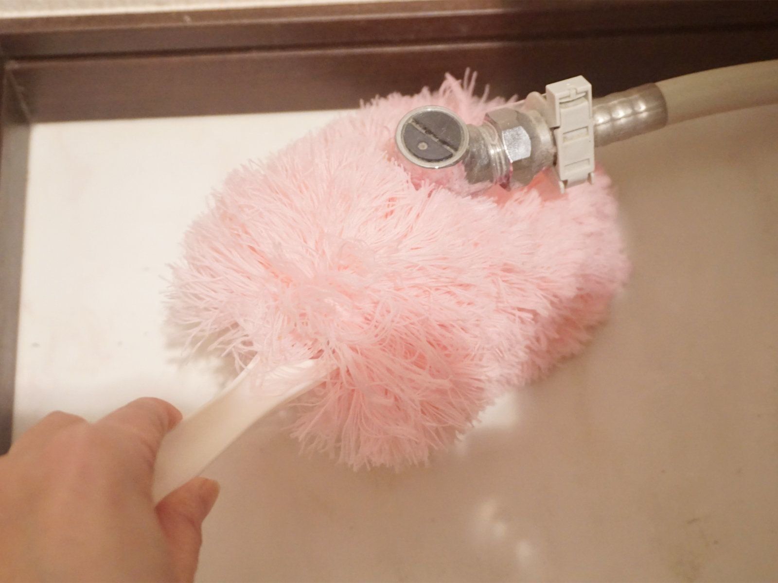 わが家では、とくにトイレや洗濯機まわりの掃除に活躍しています。手の届きにくいトイレのパイプまわりや洗濯機のホースに埃を見つけたら、V字型モップを差し込み、拭き取ります。両側から挟み込めるので、手を伸ばして不自然な体勢になって掃除をする必要もなく、一度で汚れを取りきることができて便利です。