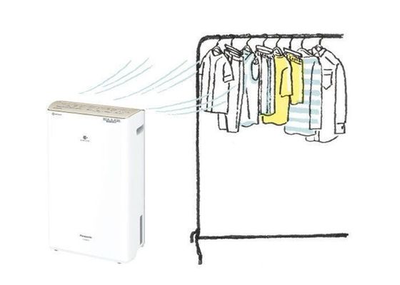 (※4)日本電機工業会自主基準(JEMA-HD090:2017)に基づき試験を実施【試験条件】衣類の量 約2.0kg相当(Tシャツ3枚・Yシャツ2枚・パジャマ1組・下着7枚・靴下2足・タオル3枚)、60Hz、室温20℃、湿度70%、部屋の広さ6畳相当。【試験方法】干し方パターンA(傘干しタイプ18本)。衣類乾燥・速乾モード、風向上下:上方向、風向左右:F-YHRX200/スポット・フラップ全開、F-YHSX120・F-YZSX80/スポット・フラップ全開から1段階閉じ、 F-YZSX60・F-YZS60/ストレート【試験結果】20℃(梅雨時)F-YHRX200/約58分、F-YHSX120/約75分、F-YZSX80/約97分、F-YZSX60・F-YZS60/約108分。10℃(冬季)F-YHRX200/約76分、F-YHSX120/約97分、F-YZSX80/約114分、F-YZSX60・F-YZS60/約135分。なお、実使用時の消費電力量や運転時間は、設置環境や衣類の種類・量・干し方により異なります。