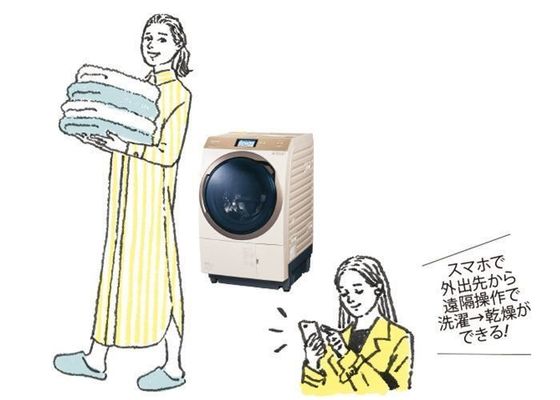 衣類の黄ばみを除去する「約40℃つけおき」コースをはじめ、温水で洗うコースが充実。タオルがふんわり仕上がる専用コースも搭載。さらに「液体洗剤・柔軟剤自動投入」や「スマホで洗濯」にも対応。