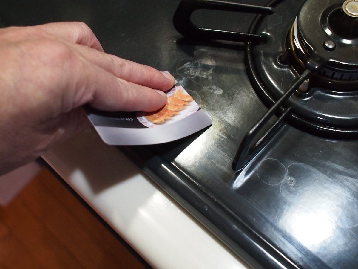 ガンコな吹きこぼれ汚れは、クレジットカードなどのプラスチックカードで簡単にこそげ落とせます。