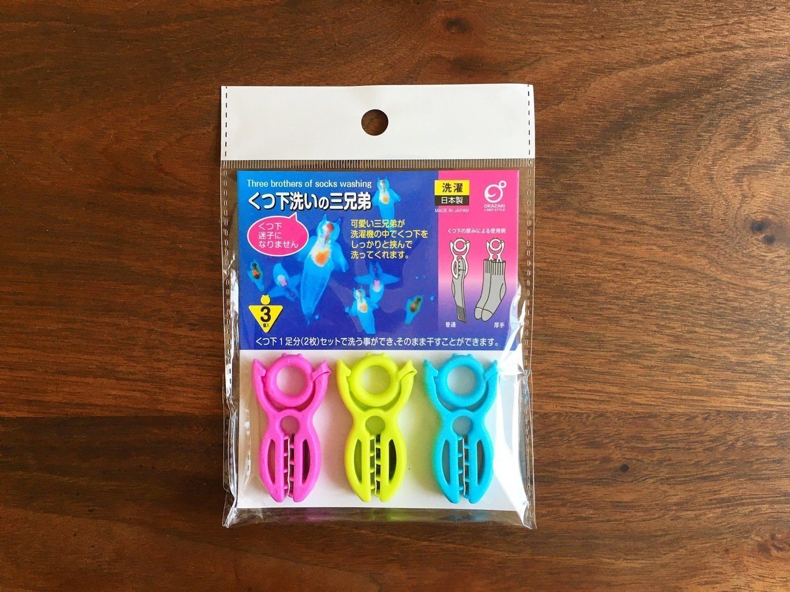 もうひとつ靴下でよくある困りごとは、洗濯機内での迷子です。干すときにぬれた洗濯ものの中からもう片方の靴下を探すのは地味にストレスです。そこでおすすめしたいのが「くつ下洗いの三兄弟」です。