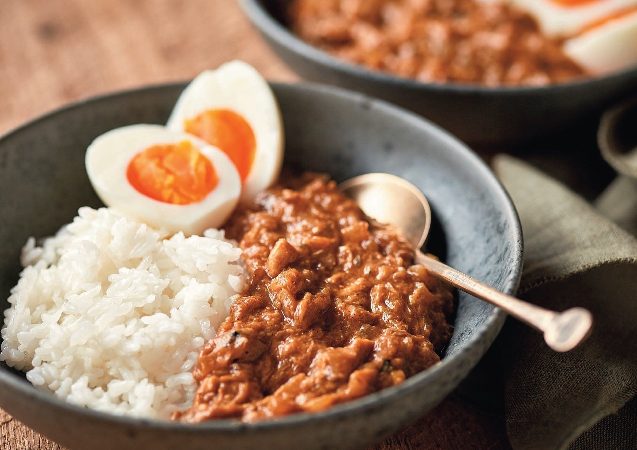 (1)にふんわりとラップを掛けて電子レンジで7~8分加熱し、ルウが溶けるまでよく混ぜる。器にご飯を盛り、カレーをかけてゆで卵を添える。
