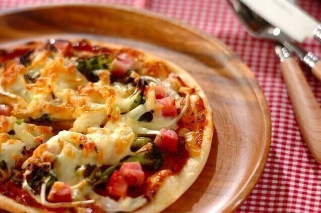 生地にイーストを使わないので、初心者でも気軽に挑戦できるピザのレシピです。ソースの赤にブロッコリーの緑が映えて、彩り鮮やか。おもてなしやホームパーティにも喜ばれそうですね。