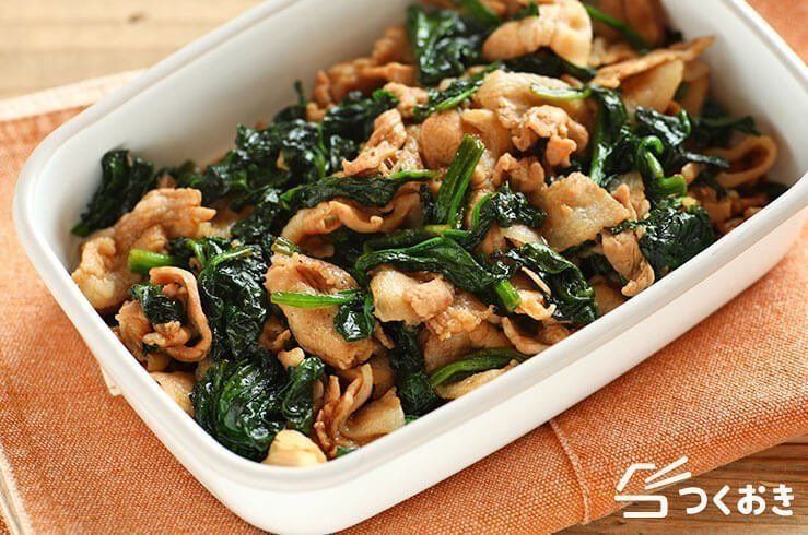がっつりスタミナをつけたいときに食べたい、豚バラとほうれん草のコクうま炒め。甘みとうま味たっぷりのオイスターソースでこっくり味つけられているので、ご飯がどんどんすすんでしまいますよ!豚肉を多めに入れると、より食べごたえがアップして◎。